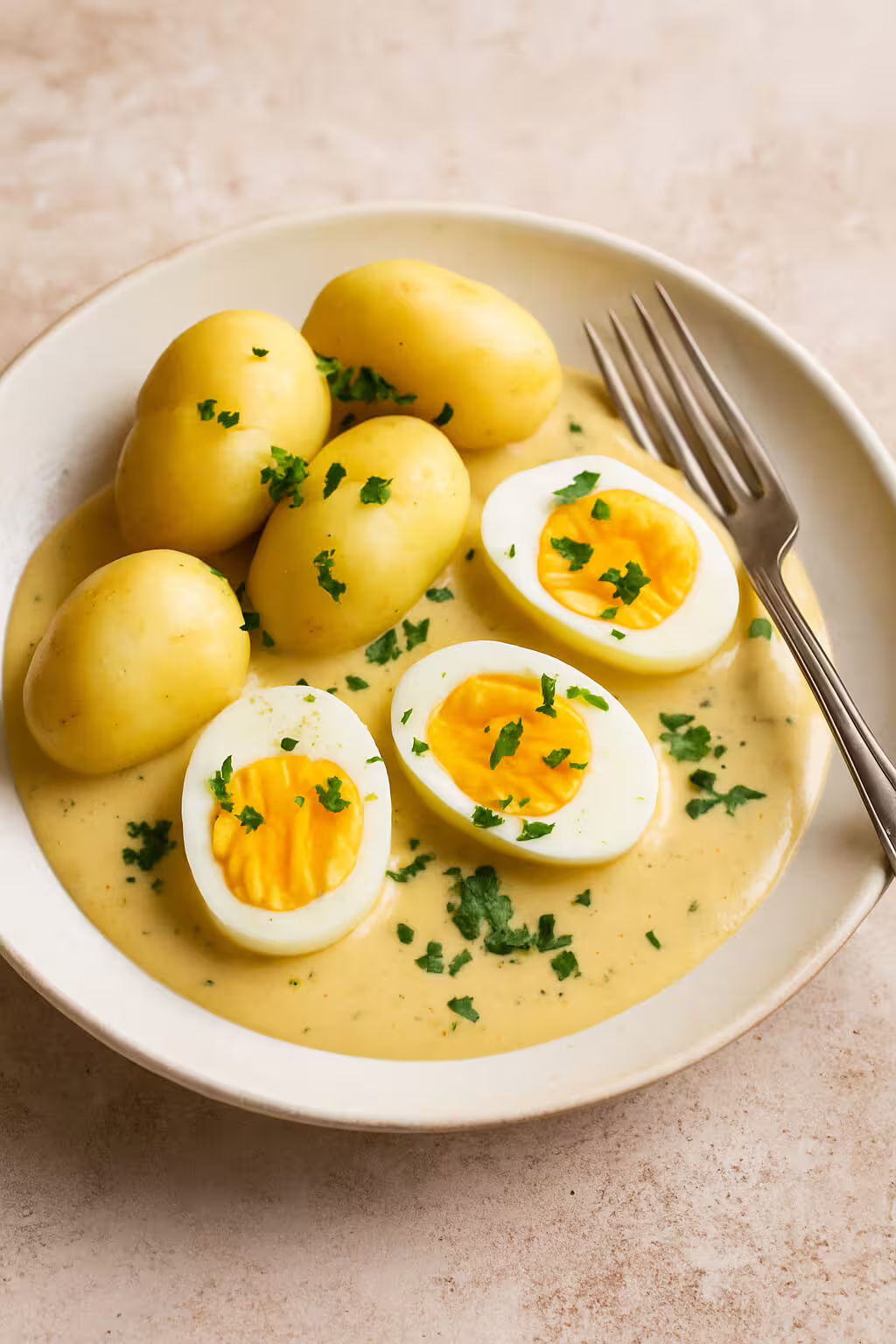 The foundation of this dish lies in the boiled eggs, which should be cooked to perfection—firm whites and creamy yolks. The eggs are peeled and placed into a luscious mustard sauce that brings a bold contrast to their mild flavor. The mustard sauce is made by combining Dijon mustard with a touch of honey or sugar for sweetness, along with a bit of vinegar for acidity. A rich, creamy base of mayonnaise or sour cream helps to balance the sharpness of the mustard, while a pinch of salt and pepper elevates the overall taste.