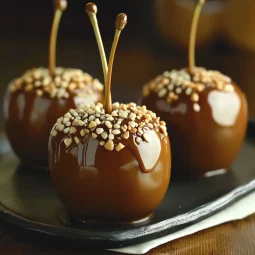 For added flair, the apples can be rolled in toppings like crushed nuts (pecans, walnuts, or peanuts), mini chocolate chips, sprinkles, or even a drizzle of melted chocolate. These toppings not only add extra texture and flavor but also make the apples visually appealing, turning them into an indulgent treat that’s as much fun to make as it is to eat.