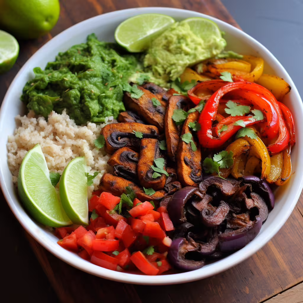 At the heart of this bowl are the fajita-style vegetables. Think charred bell peppers, sweet red onions, and tender zucchini, all tossed in olive oil, garlic, lime juice, and smoky chipotle seasoning. Roast or sauté them until they’re slightly caramelized but still full of bite. This mix brings a depth of flavor that’s both spicy and a little sweet.
