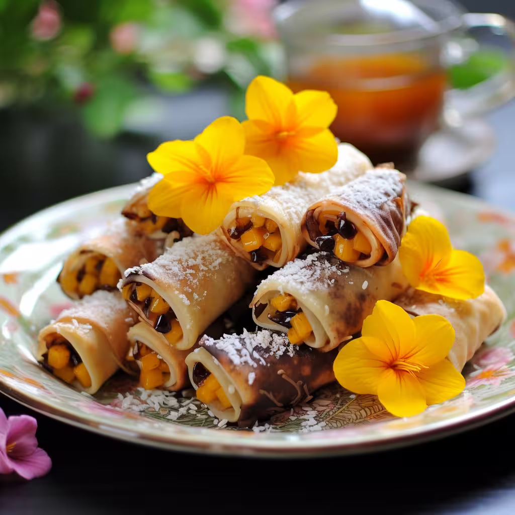 - Serve the chocolate mango spring rolls warm.