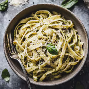 The star of this dish is the pesto sauce, made from fresh basil, garlic, pine nuts, Parmesan cheese, and olive oil, all blended together until smooth. To create the creamy texture, a generous amount of heavy cream or half-and-half is added to the pesto, transforming it into a velvety sauce that coats the pasta beautifully. The pesto cream sauce is then tossed with the cooked pasta and chicken, ensuring that each bite is rich and flavorful.