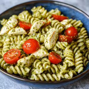 This creamy chicken pesto pasta is a perfect balance of herby, savory, and creamy, making it a dish that’s sure to please everyone at the table.