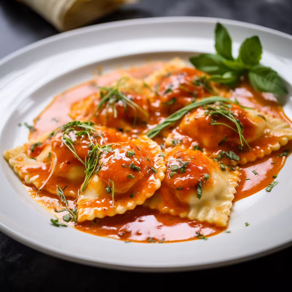 The star of this dish is the ravioli itself, typically filled with a blend of creamy ricotta and tender spinach. The filling is light yet satisfying, offering a balance of richness from the cheese and freshness from the greens. Paired with the soft, delicate pasta, it creates a perfect bite every time.