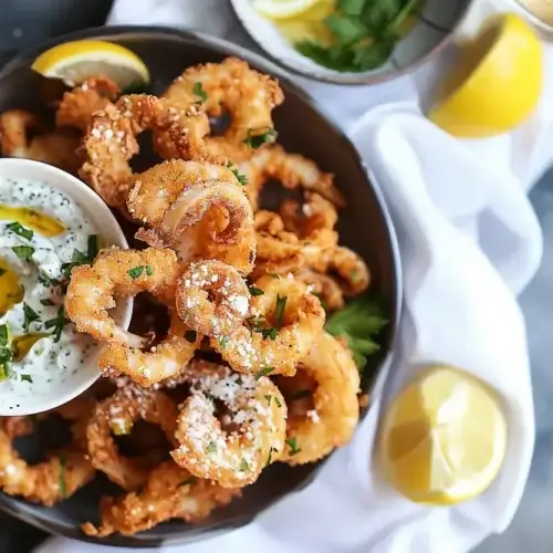 This dish is perfect as an appetizer for a Mediterranean meal or as a light main course. It’s ideal for summer gatherings or cozy evenings at home when you want something flavorful but not too heavy. The crispy calamari and creamy tzatziki are also perfect for sharing, making it a crowd-pleaser at dinner parties or casual get-togethers.
