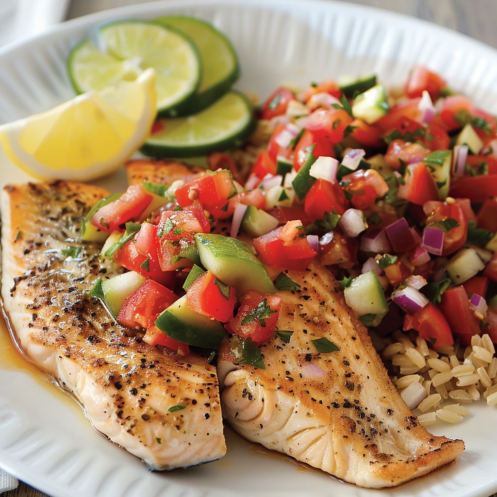 What truly sets this dish apart is the Mediterranean salsa, which is both refreshing and full of texture. Made with diced tomatoes, cucumber, Kalamata olives, red onion, and fresh herbs like parsley and dill, the salsa is light yet packed with flavor. A drizzle of olive oil and a squeeze of fresh lemon juice ties everything together, creating a vibrant topping that complements the tilapia perfectly.