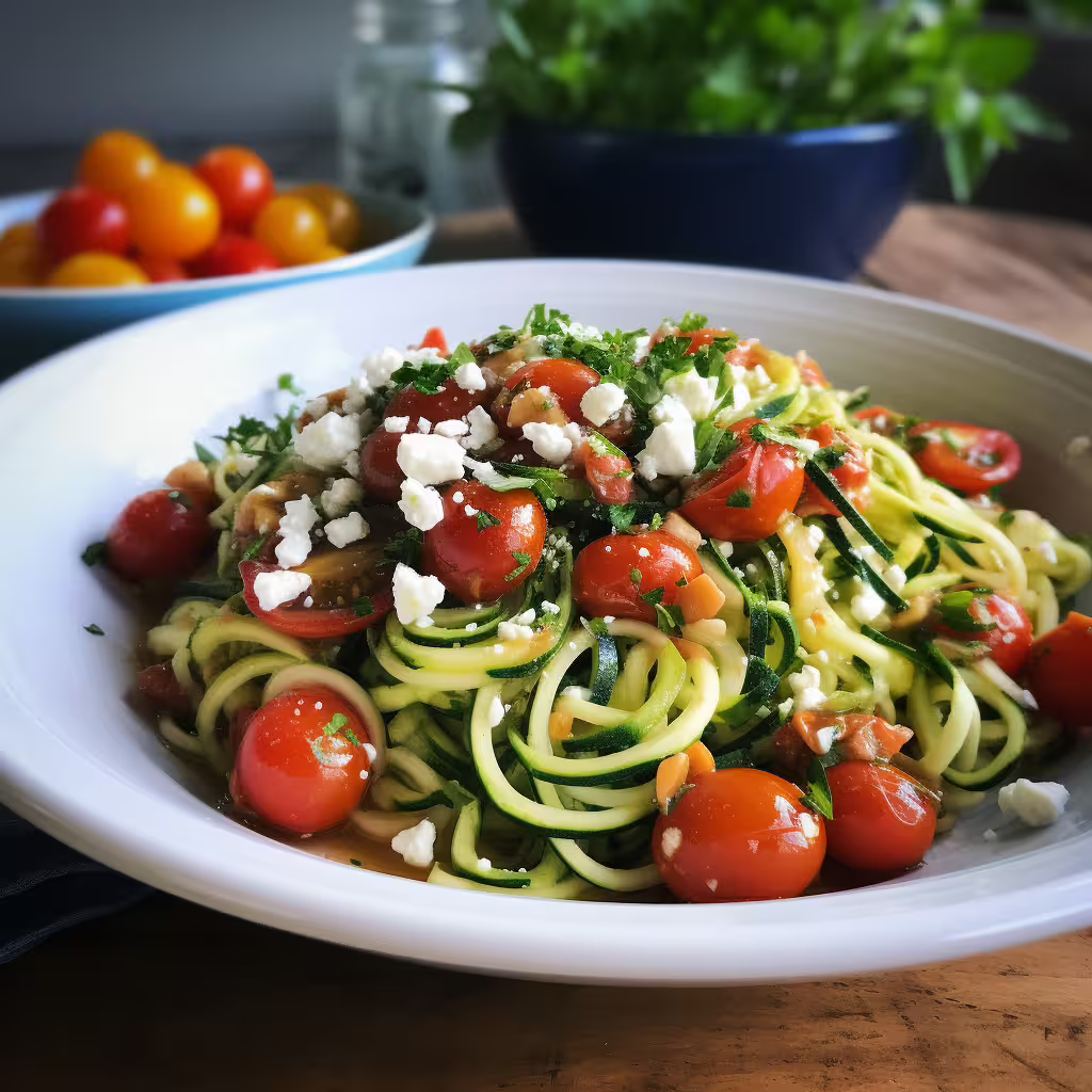 Greek-style zoodles with tomatoes are not only quick and easy to make but also customizable. You can add a protein such as grilled chicken, shrimp, or chickpeas to turn it into a more substantial meal. You can also add other vegetables like cucumber, red onion, or bell peppers for more color and crunch.