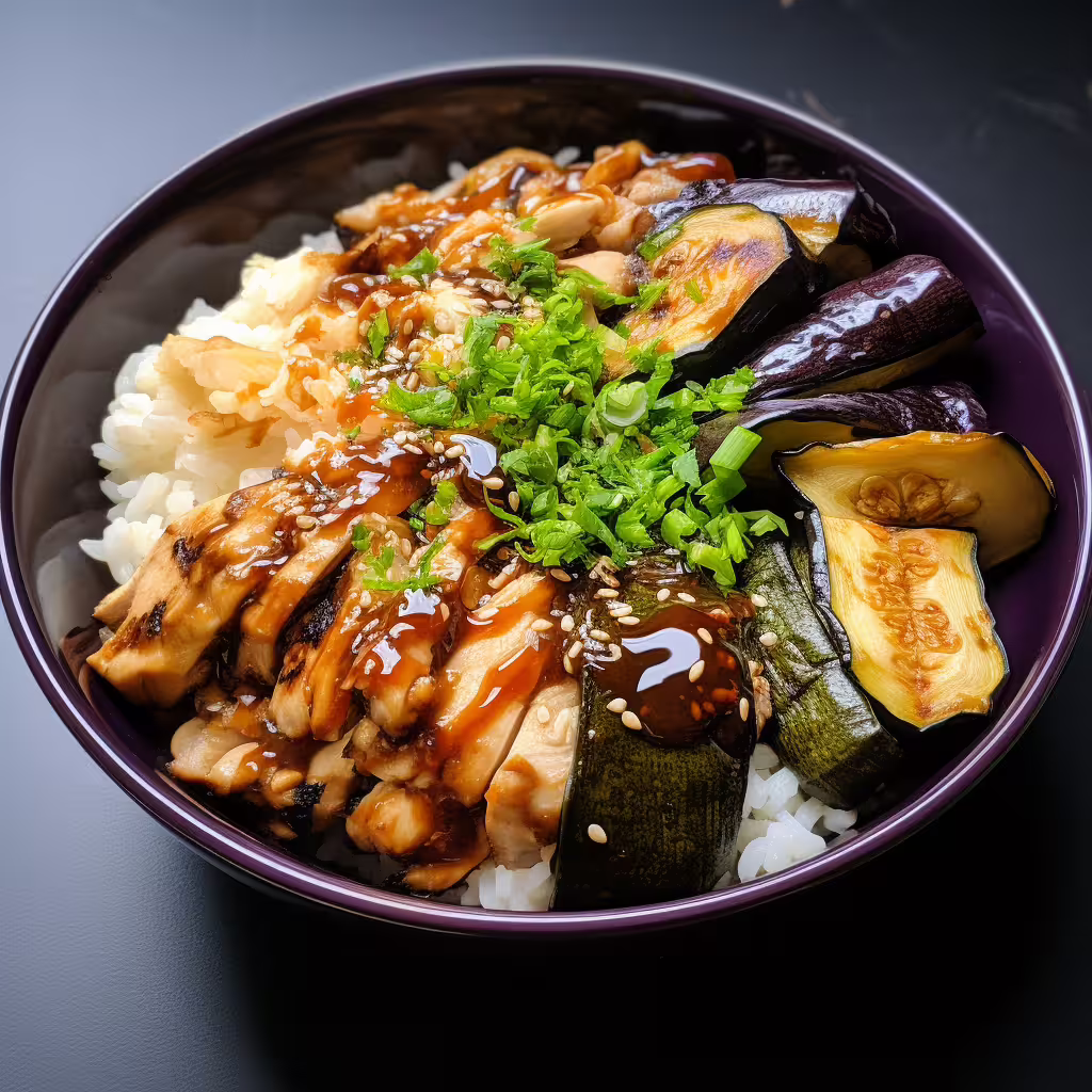 This donburi is versatile and can easily be adapted to your taste. You can swap the grilled chicken for tofu for a plant-based version or use other vegetables like zucchini or bell peppers instead of eggplant. It’s a perfect meal for busy weeknights or lazy weekends, as it comes together quickly and is both filling and comforting.