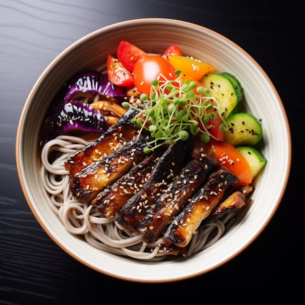 A Grilled Eel and Vegetable Soba Bowl is a celebration of rich, umami flavors paired with the earthy comfort of buckwheat noodles. This dish offers a perfect balance of taste and nutrition, bringing together tender, smoky eel with crisp, colorful vegetables, all nestled over a bed of soba. It’s the kind of meal that satisfies both the palate and the body, making it a standout for lunch or dinner.