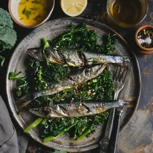 Broccoli rabe, also known as rapini, adds an earthy, slightly bitter note that balances the richness of the sardines. It’s typically blanched or sautéed with garlic, olive oil, and a pinch of chili flakes. That little bit of heat lifts the whole dish, while the garlic ties everything together.