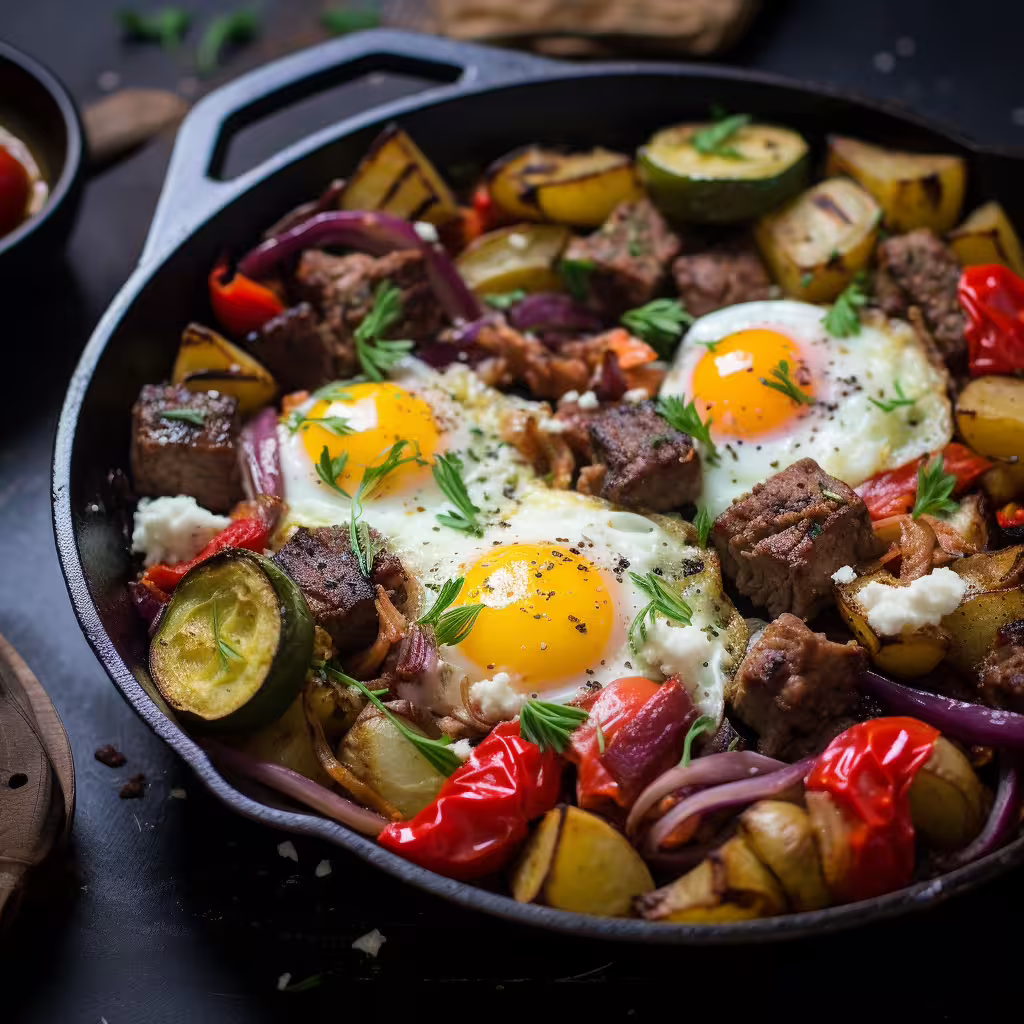 For the breakfast twist, you’ll crack a few eggs right into the skillet and let them cook until the whites are set but the yolks are still runny. The richness of the eggs pairs beautifully with the charred beef and veggies. Sprinkle on some crumbled feta cheese just before serving, and you’ve got a satisfying, flavor-packed breakfast that feels both rustic and refined.