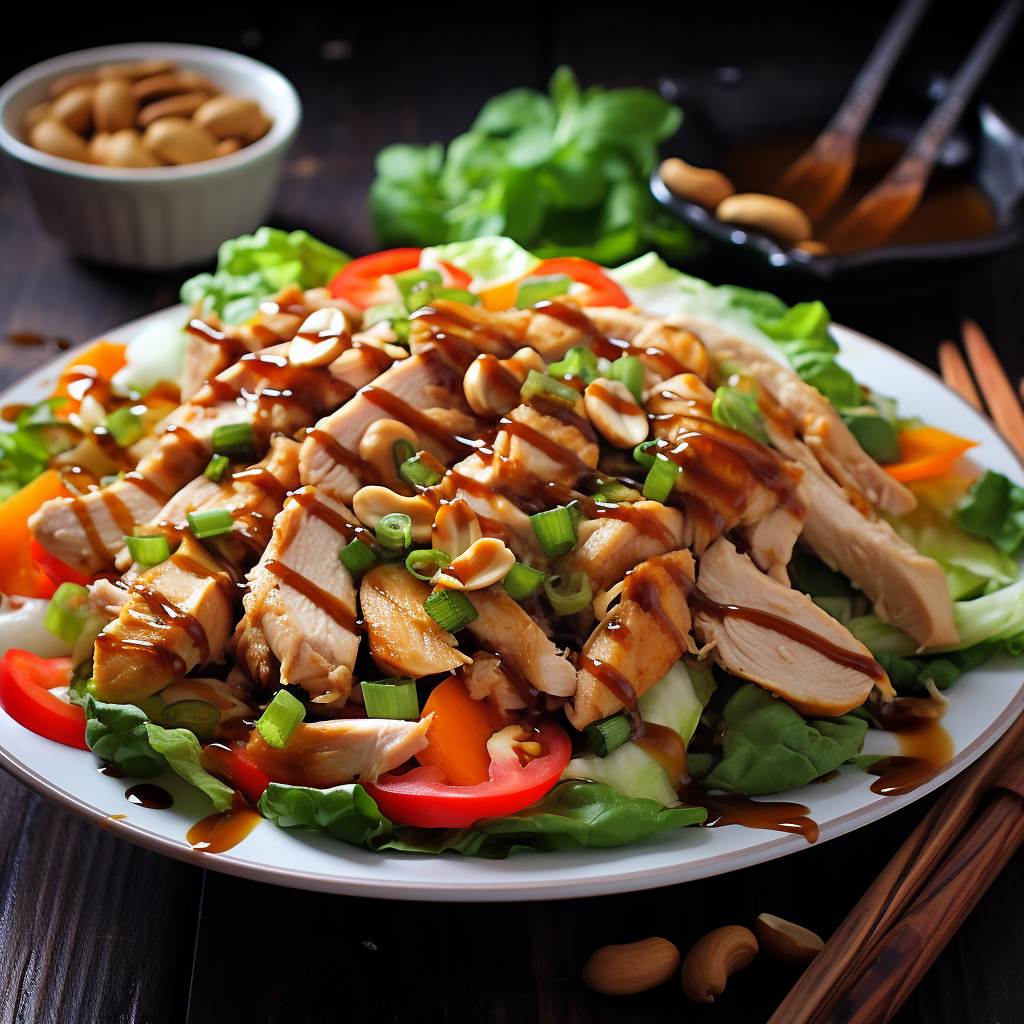 3.56 Facebook Twitter Pinterest Yummly WhatsApp Recipe Salad Cashew Chicken Salad with Soy-Ginger Dressing