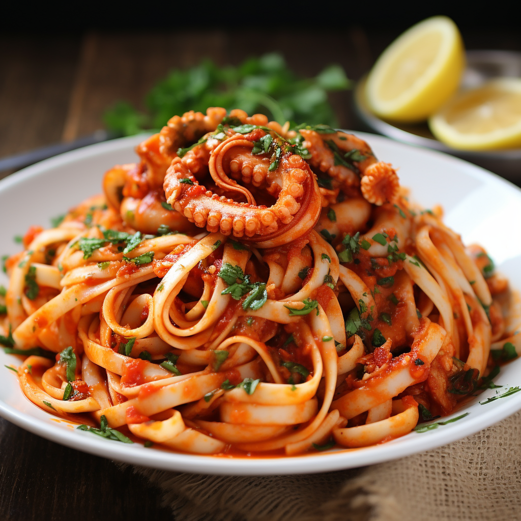 3.59 Facebook Twitter Pinterest Yummly WhatsApp Lunch Recipe Linguine with Calamari and Spicy Marinara