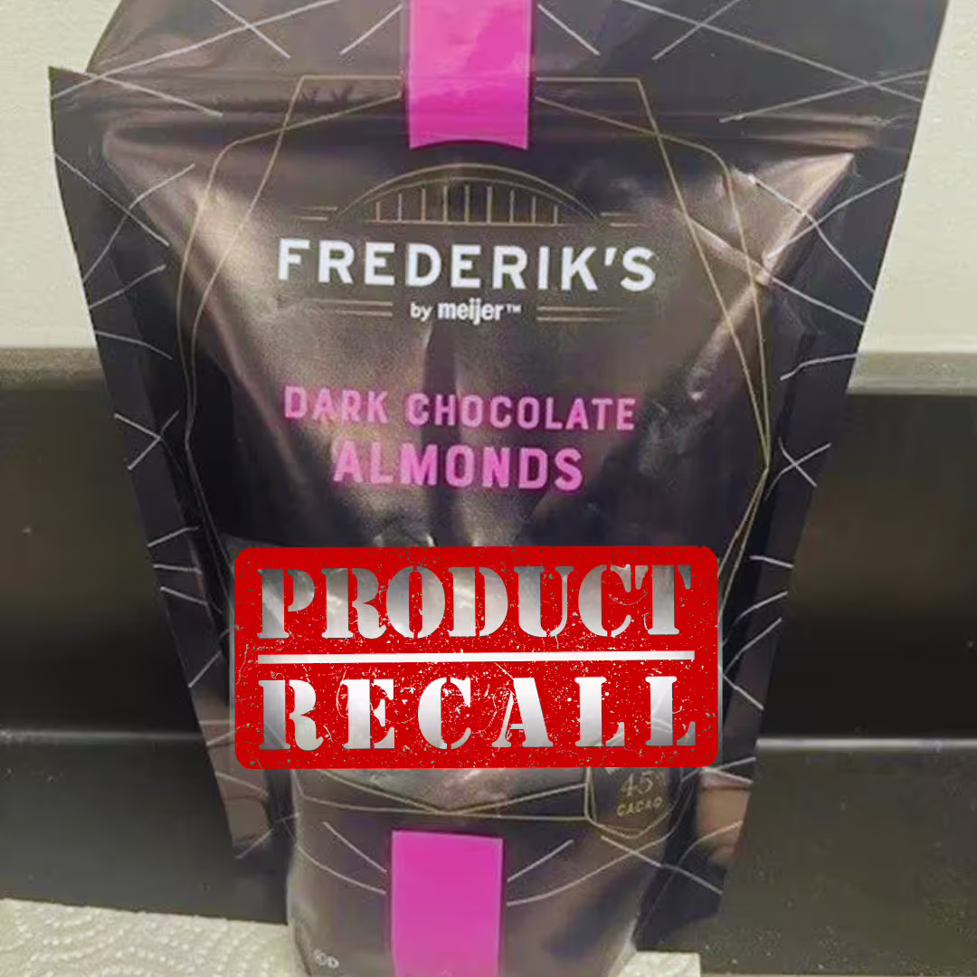 The affected products include Frederik’s Dark Chocolate Almonds in black stand-up pouches with sell-by dates of May 7, 2026, or May 28, 2026, as well as 8-count, 1.5-ounce multi-pack boxes with a sell-by date of May 5, 2026. The recall affects Meijer stores in Michigan, Indiana, Illinois, Ohio, Kentucky, and Wisconsin.