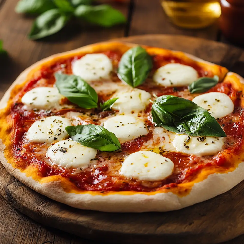 - Toppings: Fresh basil leaves, extra virgin olive oil