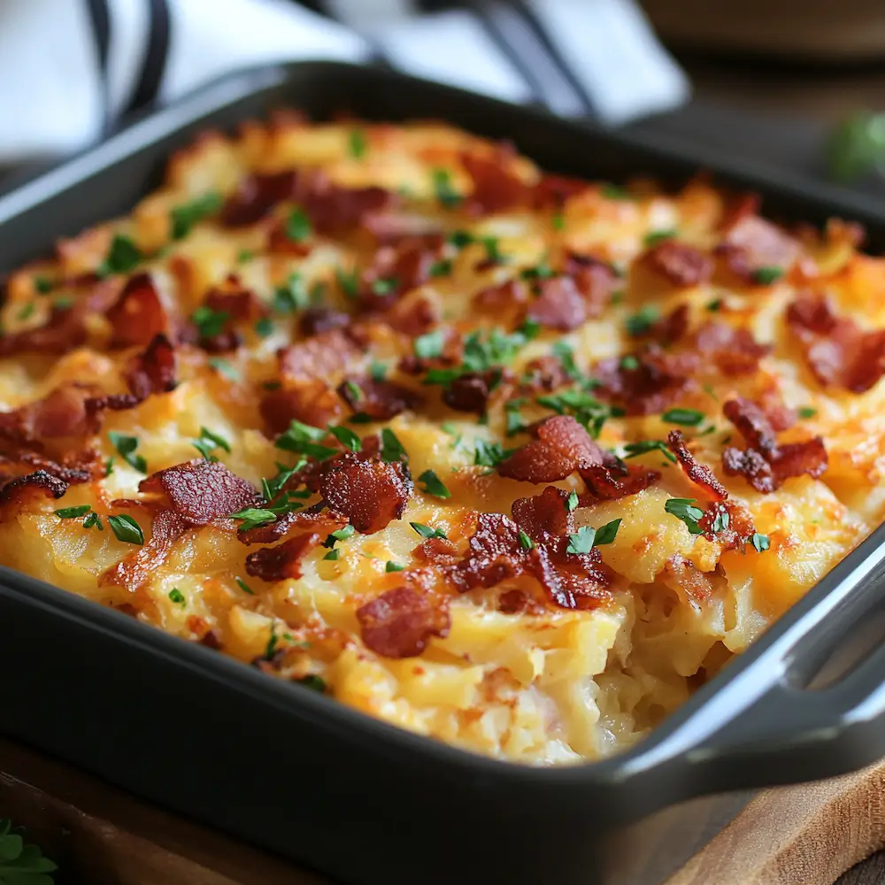 Bacon and hashbrown casserole is a beloved comfort food that brings together everything great about a hearty breakfast in one warm, bubbly dish. Crispy bacon, golden hashbrowns, creamy cheese, and eggs combine to create a satisfying meal that works as well for a weekend brunch as it does for a simple weeknight dinner. This casserole is rich, filling, and full of flavor, making it a go-to recipe for potlucks, holidays, or feeding a hungry crowd.