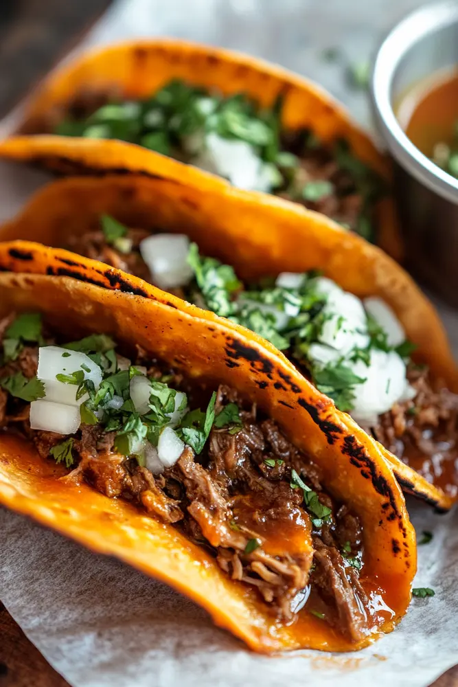 Don’t forget a side of consommé for dipping – it’s the ultimate birria taco experience!
