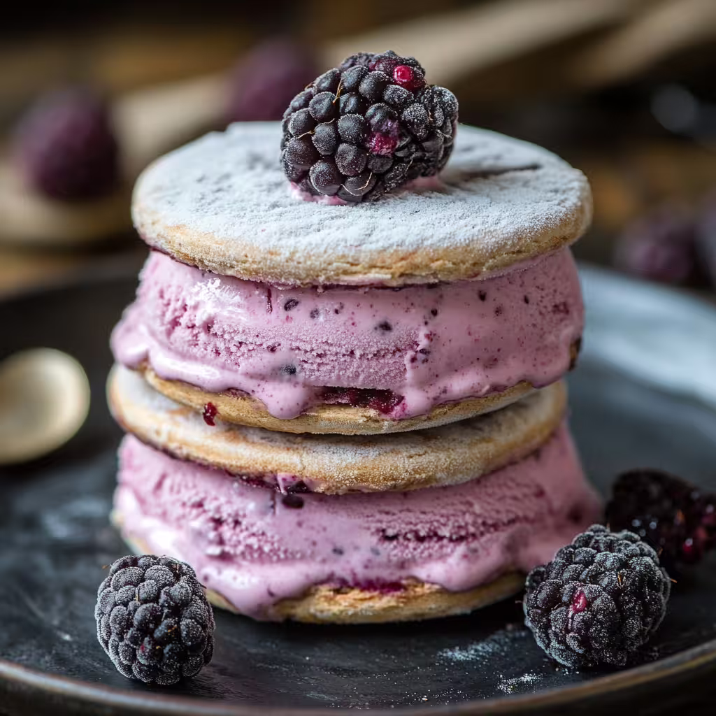 Black Raspberry Ice Cream Sandwiches are a refreshing and indulgent treat that combine the sweet, tart flavor of black raspberries with the creamy richness of homemade ice cream, all nestled between soft, chewy cookies. This dessert is perfect for summer gatherings, picnics, or whenever you’re craving a fun, frozen treat. The unique flavor of black raspberries adds a twist to the classic ice cream sandwich, making it a standout dessert.