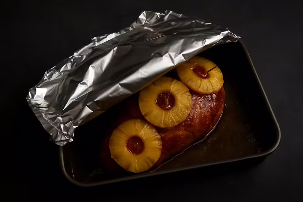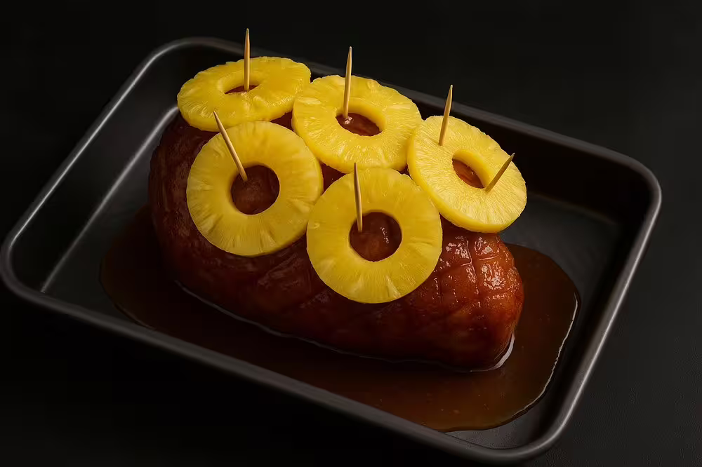 Pineapple adds a sweet, tangy flavor and its natural enzymes help tenderize the ham, enhancing texture and taste.