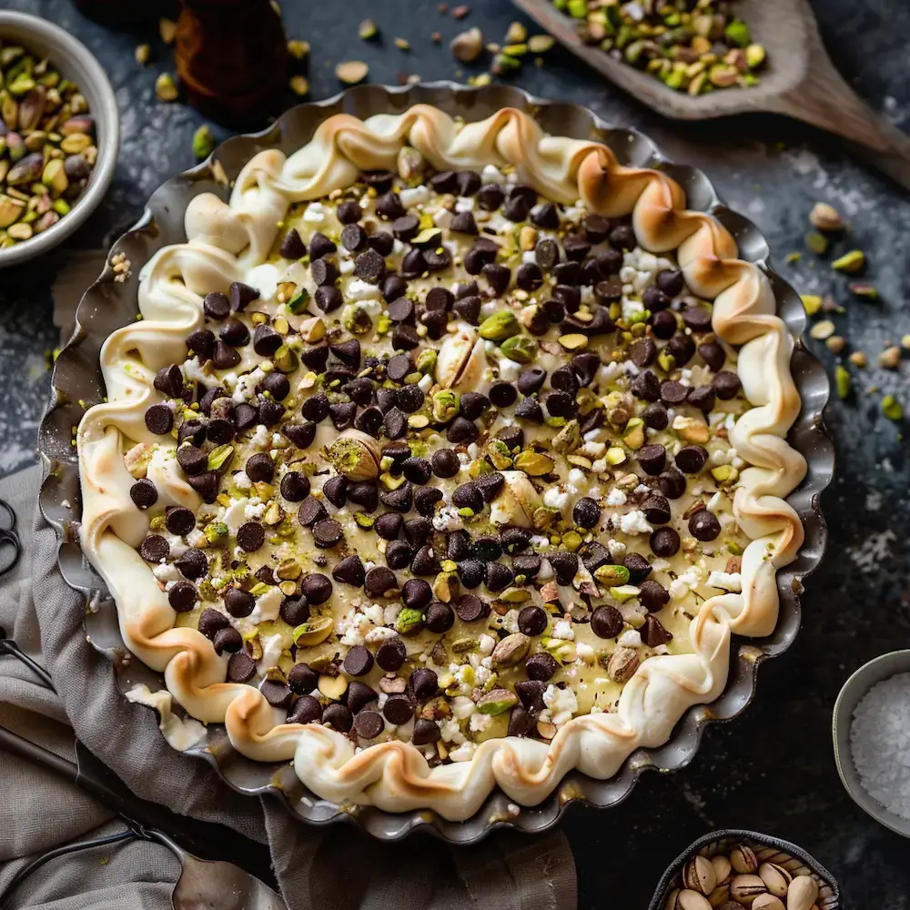 - Optional: garnish with additional chocolate chips and chopped pistachios before serving.