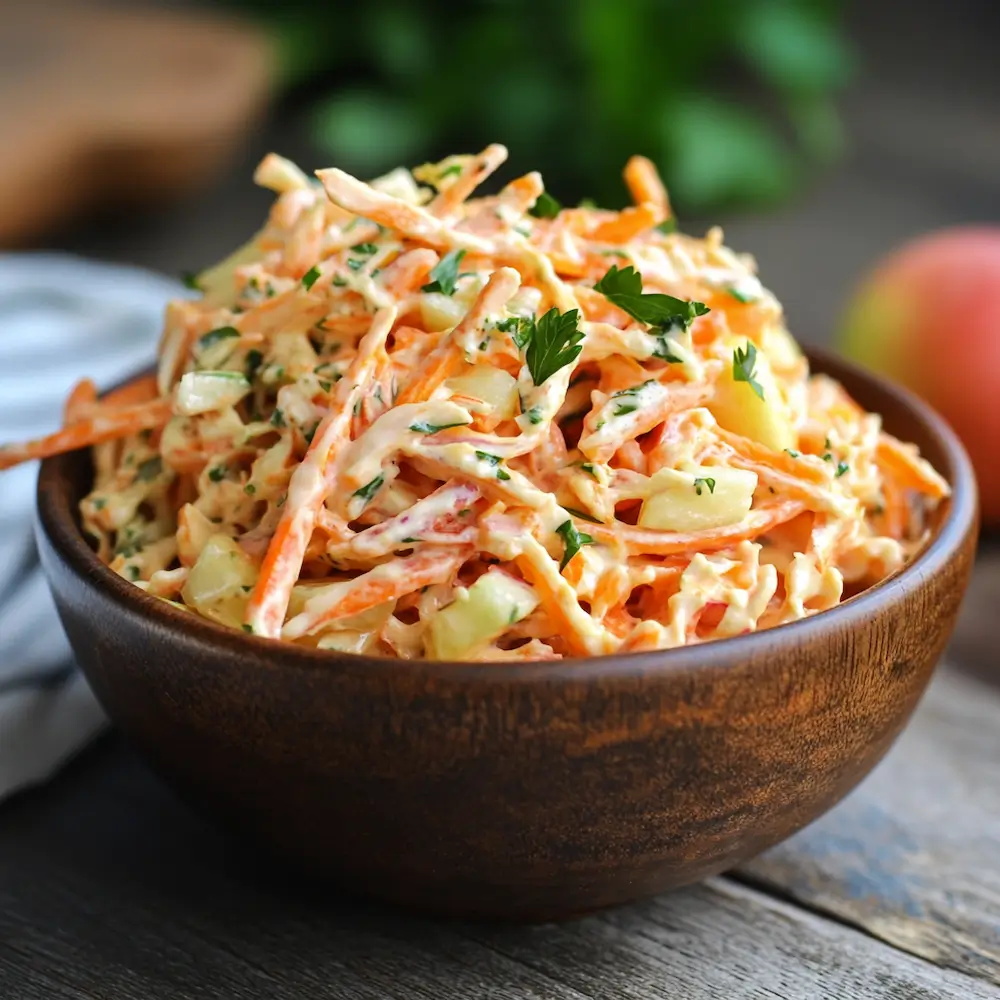 Carrot apple slaw is a vibrant and refreshing twist on the classic coleslaw. The natural sweetness of crisp apples pairs beautifully with the earthy crunch of fresh carrots, creating a light yet satisfying dish. This slaw is not only quick and easy to prepare, but it also makes a perfect side dish for any meal—whether you’re serving it with grilled meats, sandwiches, or as part of a potluck spread. The tangy dressing ties everything together, making it a truly irresistible combination of flavors.