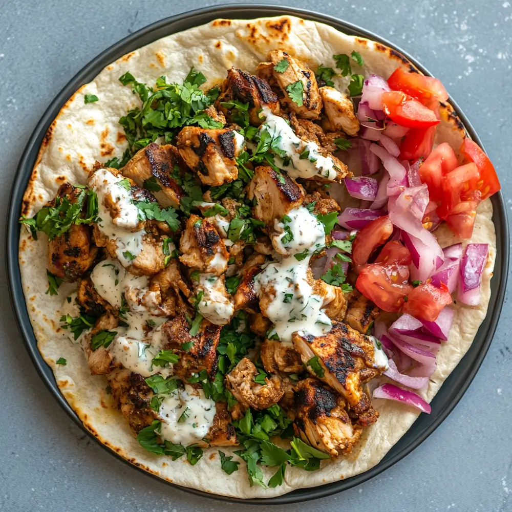 Shawarma is traditionally served in warm pita or flatbread, but you can also use lavash or tortillas for a different twist. It’s topped with a variety of ingredients such as fresh tomatoes, cucumbers, onions, and lettuce, adding a refreshing crunch to balance the richness of the chicken. The dish is often drizzled with a creamy tahini sauce, garlic sauce, or hummus, which complements the savory chicken with its smooth, nutty, and garlicky flavors.