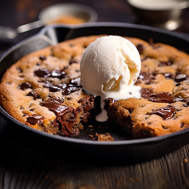 Baking it in a skillet also means it’s easy to serve right from the pan, making it a perfect dessert for casual gatherings or a cozy night in. The aroma of freshly baked chocolate chip cookie fills the room, setting the stage for an indulgent, feel-good dessert experience.