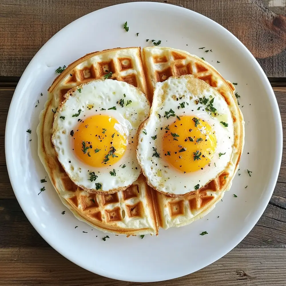 - Serve immediately and enjoy your Fried Eggs With Waffles.