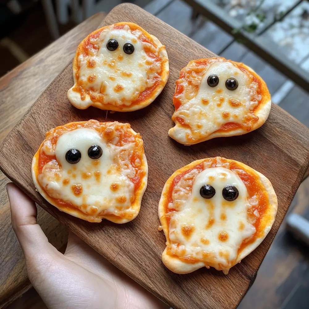 These little ghost pizzas are a hit at my Halloween party! 🎃 Everyone loved them!