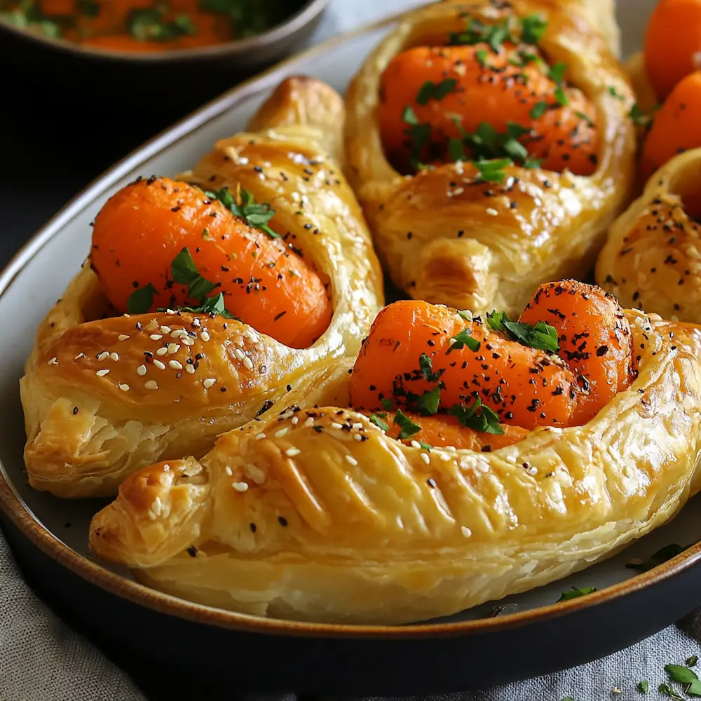 Once the carrots are tucked into the puff pastry and baked, the result is a golden-brown treat that looks as beautiful as it tastes. The glaze helps the puff pastry crisp up to perfection while keeping the carrots moist and tender. A sprinkle of fresh herbs, such as thyme or rosemary, can be added before baking for an extra layer of flavor that ties the dish together beautifully.