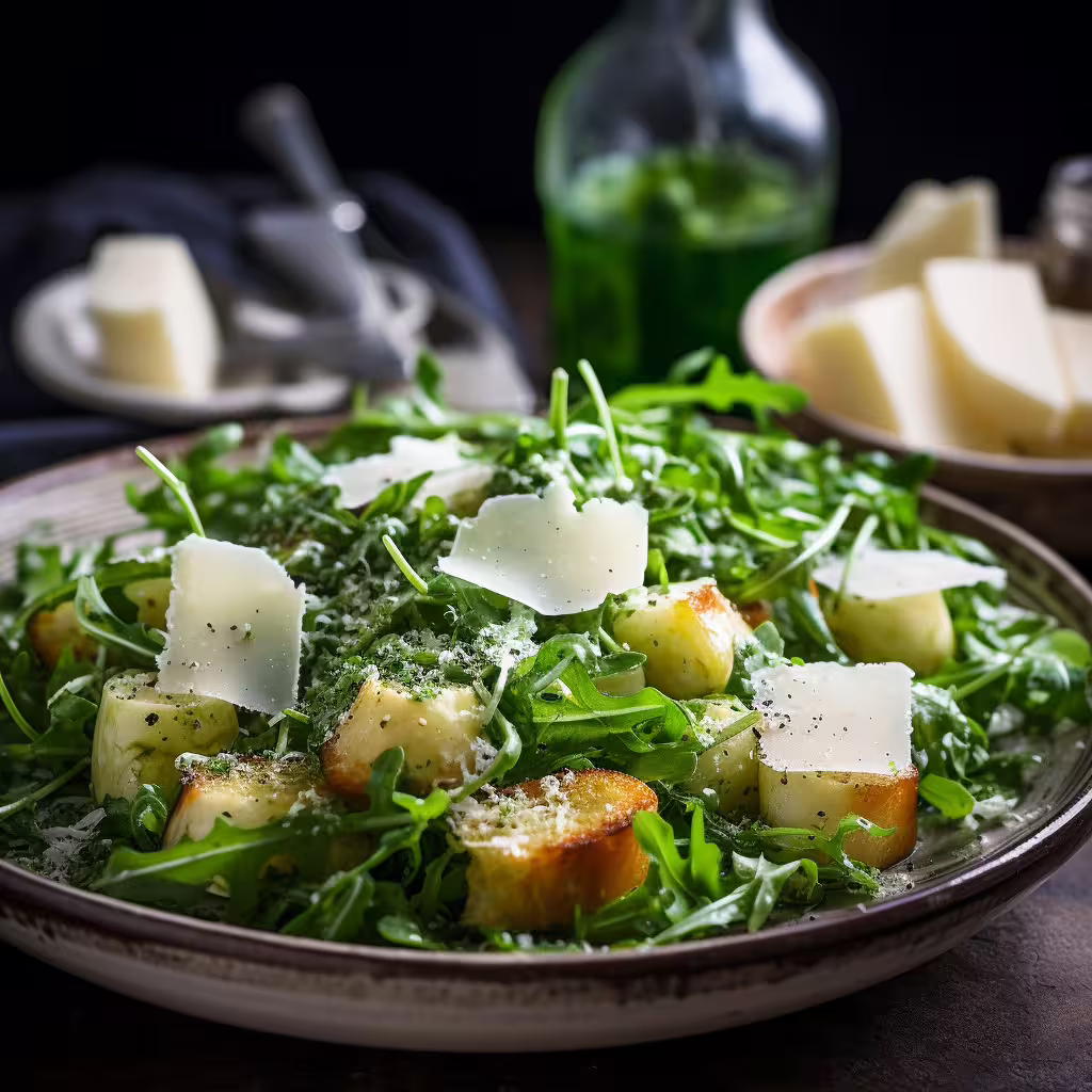 What makes this salad so special is the quality of its ingredients. The arugula brings a crisp, slightly bitter bite that pairs perfectly with the salty, nutty richness of Parmigiano. A drizzle of extra virgin olive oil and a splash of freshly squeezed lemon juice or balsamic vinegar ties everything together, adding brightness and depth without overpowering the natural flavors.