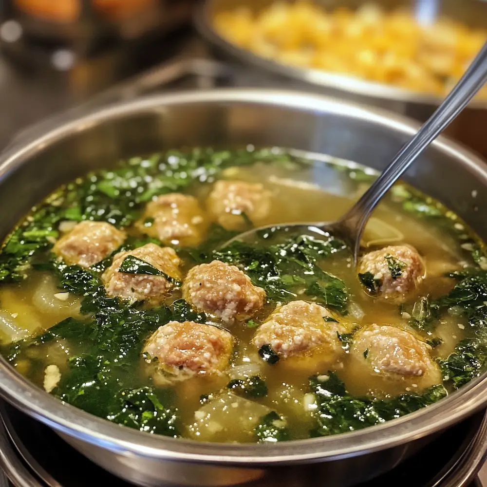 The soup’s base consists of a flavorful, homemade broth typically made with chicken or beef stock. The meatballs are made from ground beef or pork, mixed with breadcrumbs, parmesan, garlic, and herbs, creating juicy, tender bites of savory goodness. These little meatballs are gently simmered in the broth, adding rich flavors to the soup.
