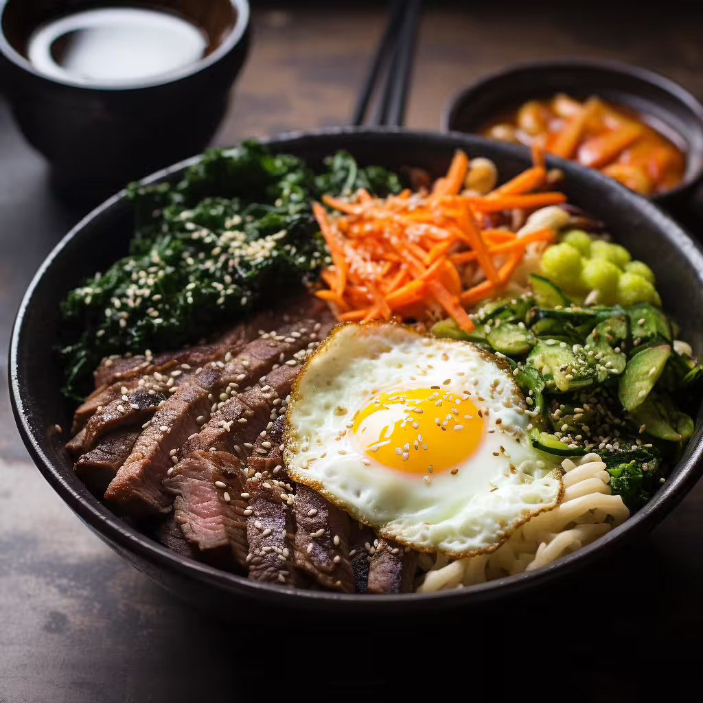 At the core of this dish is tender, thinly sliced beef, which is typically sautéed with savory seasonings like soy sauce, garlic, and a touch of mirin. The beef soaks up all the flavors, creating a rich, savory base for the bowl. The beauty of this breakfast is in its simplicity. A handful of vegetables like spinach, mushrooms, and scallions are added, providing a burst of freshness, color, and texture to the dish. These vegetables not only add essential nutrients but also balance the richness of the beef.