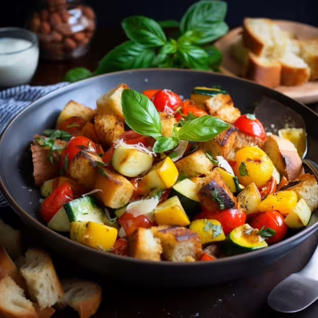 This Italian bread salad is best enjoyed during the summer season when fresh and juicy tomatoes are in abundance. Its light and refreshing flavors make it an ideal dish to cool down on a sunny day.