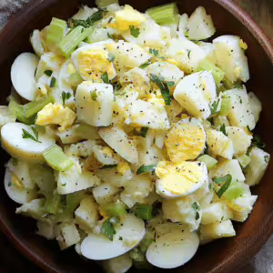 The creamy dressing is what makes this potato salad irresistible. A mixture of mayonnaise, Dijon mustard, and a bit of apple cider vinegar gives it the right balance of richness and tang. Season with salt, pepper, and a touch of garlic powder for depth, then stir in finely chopped celery, onion, and pickles for crunch and flavor. For a bit of extra tang, some people like to add a spoonful of sour cream or Greek yogurt to the mix.