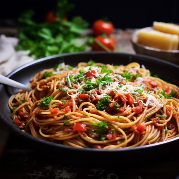 A simple and delicious pasta dish that can be made in no time. This quick and easy pasta recipe is perfect for weeknight dinners. It features spaghetti tossed in a flavorful tomato sauce with garlic and red pepper flakes. Top it off with grated Parmesan cheese and fresh basil for a burst of flavor.