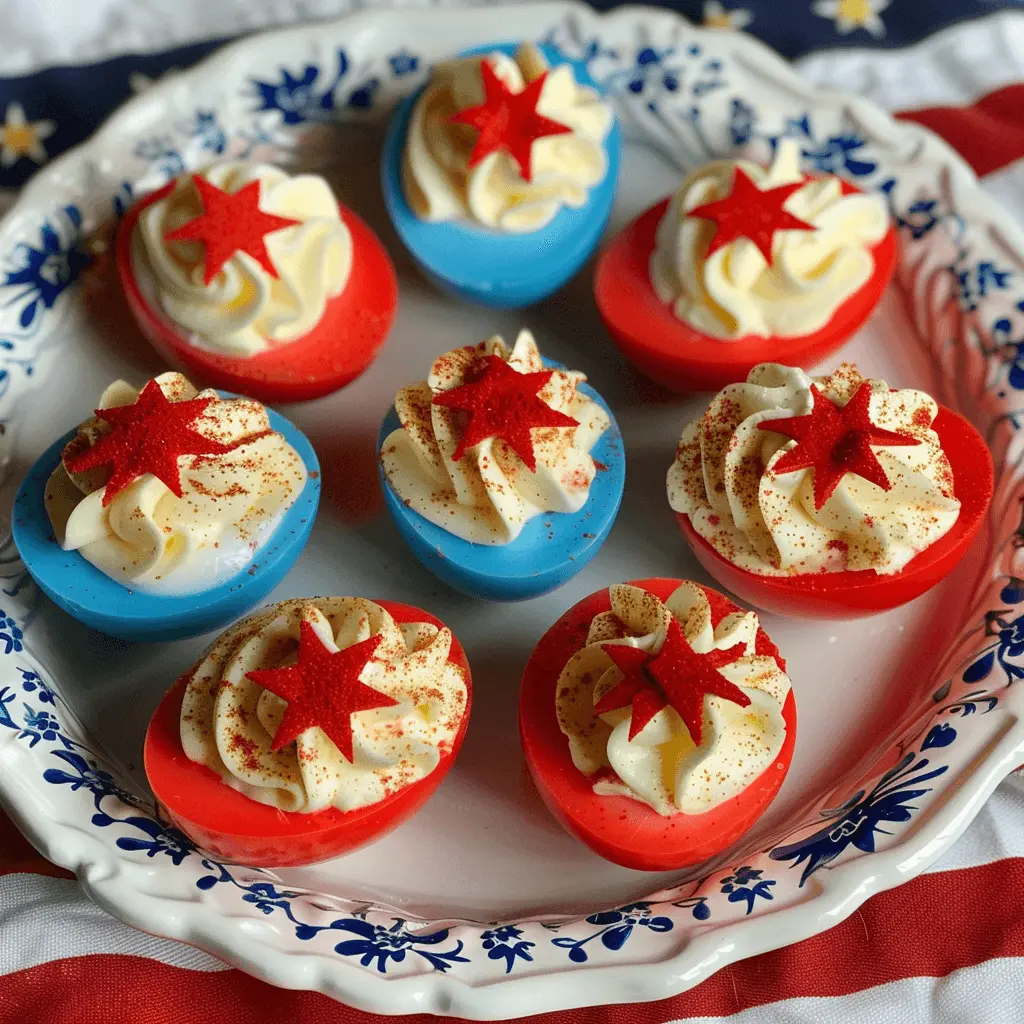 These colorful and festive Red, White, and Blue Deviled Eggs are a delightful twist on a classic appetizer. Perfect for any patriotic celebration, these deviled eggs are sure to impress your guests.