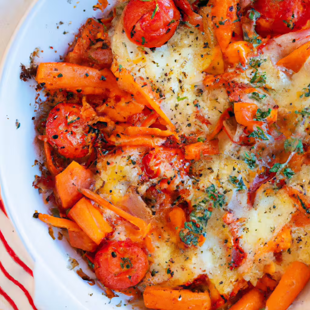 - Bake in the preheated oven for 20-25 minutes or until the vegetables are tender and the cheese is melted and bubbly.