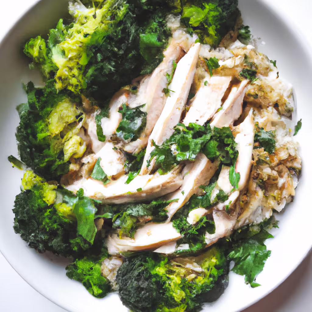 - Serve the rice in a bowl, topped with sliced chicken and broccoli.